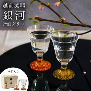 冷酒グラス 高杯型 銀河 ペア 木箱入り ( 退職祝い 定年 ぐいのみ 盃 酒器 猪口 日本酒 越前漆器 結婚 出産 内祝い 引き出物 金婚式 誕生日プレゼント )