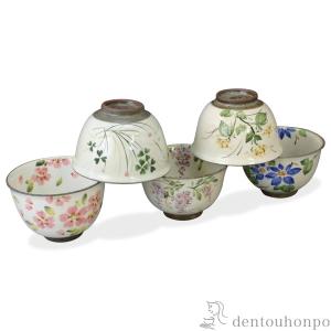 お茶呑茶碗 桜草花 5客セット ( 名入れ有料 退職祝い 定年 茶器セット 急須 湯呑み 日本茶 中国茶 清水焼 京焼 結婚 出産 内祝い 引き出物 金婚式 )