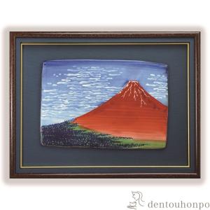 陶額 富士・凱風快晴 ( 名入れ有料 退職祝い 定年 置物 額飾り 陶板 陶板画 法人 アートパネル 清水焼 京焼 周年 創立 上場 竣工 開店 事務所移転 )