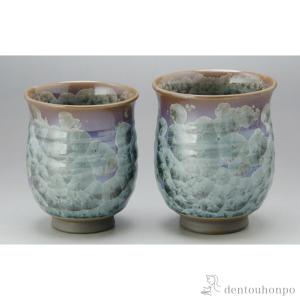 花結晶 組湯呑 錆浅葱 ペアセット ( 名入れ有料 湯呑み 湯のみ セット 湯飲み おすすめ 清水焼 京焼 結婚 出産 内祝い 引き出物 金婚式 )