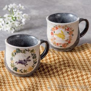 九谷焼 ペアマグカップ 丸文うさぎ ( 退職祝い 定年 プレゼント デザイン マグ オリジナル タンブラー セット 九谷焼 結婚 出産 内祝い 引き出物 金婚式 )