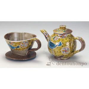 九谷焼 ドリッパー付ポット 青い鳥 ( 退職祝い 定年 コーヒー コーヒーカップ ドリッパー ドリップ カフェ 九谷焼 結婚 出産 内祝い 引き出物 )