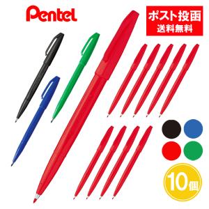 ぺんてる サインペン 赤 黒 青 緑 10個セット 10本