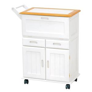 キッチンワゴン/キッチン収納 〔ナチュラル×ホワイト〕 約幅59cm 木製 扉付き 取っ手 キャスター付き 完成品 〔ダイニング〕