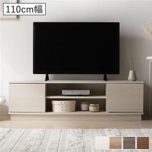 扉付き テレビ台 テレビボード 110cm幅 木目ホワイト 壁置きタイプ 収納力抜群 可動棚 コード穴付 ローボード リビング 組立品