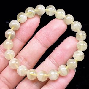 PROME 天然石【一点物】高品質・リビアングラス(希少・クリストバライト内包)・リビア砂漠産・ブレスレット・v74379