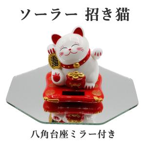 開運 ソーラー 招き猫 左手 台座ミラー付き まねきねこ 金運招来 風水 グッズ ゴールド ラッキーアイテム 開運 開運グッズ 金運アップ 金運 開運祈願 金運財布