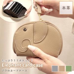 本革カードケース かわいい レディース ゾウ型 名刺入れ レシート ポケット 小物 収納 小型 コンパクト キャッシュレス Suica Pasmo 電子マネー ポイント消化