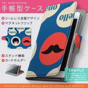 手帳型 docomo softbank au 全機種対応 あり カバー 手帳型スマホ レザー ケース ハート ヒゲ イラスト 模様 青 008093