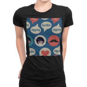 tシャツ レディース 半袖 ブラック 黒 デザイン S M L XL Tシャツ ティーシャツ T shirt ハート ヒゲ イラスト 模様 青 008093