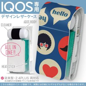 iQOS アイコス 専用 レザーケース 従来型 / 新型 2.4PLUS 両対応 「宅配便専用」 タバコ カバー デザイン ハート ヒゲ イラスト 模様 青 008093