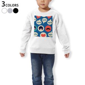 トレーナー キッズ 子供 長袖 ホワイト グレー ブラック デザイン 110 130 150 sweatshirt ハート ヒゲ イラスト 模様 青 008093