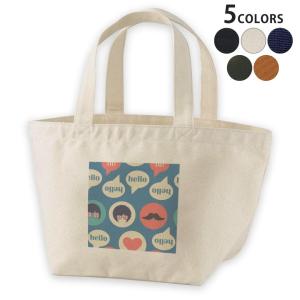 デザインランチバッグ キャンバス デイパック バッグ レディースバッグ トートバッグ ナチュラル 黒 black ハート ヒゲ イラスト 模様 青 008093