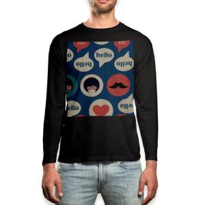 ロング Tシャツ メンズ 長袖 ブラック デザイン XS S M L XL 2XL ロンT ティーシャツ 黒 black T shirt long sleeve ハート ヒゲ イラスト 模様 青 008093