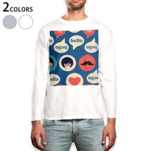 ロングTシャツ メンズ 長袖 ホワイト グレー XS S M L XL 2XL Tシャツ ティーシャツ T shirt long sleeve ハート ヒゲ イラスト 模様 青 008093