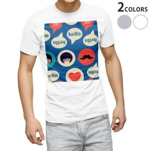 tシャツ メンズ 半袖 ホワイト グレー デザイン XS S M L XL 2XL Tシャツ ティーシャツ T shirt ハート ヒゲ イラスト 模様 青 008093