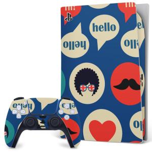 SONY PS5 デジタルエディション プレイステーション 専用おしゃれなスキンシール 貼るだけで デザインステッカー ハート ヒゲ イラスト 模様 青 008093