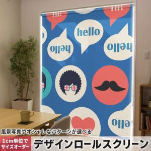 ロールスクリーン ロールカーテン オーダーメイド デザイン 008093 ユニーク ハート ヒゲ イラスト 模様 青
