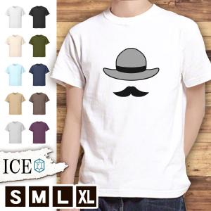Tシャツ 帽子とヒゲ メンズ レディース かわいい 綿100% 大きいサイズ 半袖 xl おもしろ 黒 白 青 ベージュ カーキ ネイビー 紫 カッコイイ