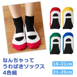 4足組 なんちゃってうわばきソックス4色組 0051640 0051740 クルー丈 靴下 キッズ 子供用 レディース 親子コーデ 脱いでもうわばき 16-21cm 21-25cm 三笠 MIKASA