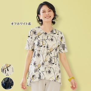 チュニック 40代 50代 60代 70代 ミセス シニア ファッション 大人 おしゃれ レディース 春夏 服 イラスト柄プリントチュニック
