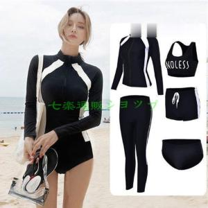 水着 レディース 上下セット 4点セット 前開き 韓国風 スポーツ 長袖水着 サーフィン 海辺 ビーチ ラッシュガード 紫外線対策 日焼け対策 2色