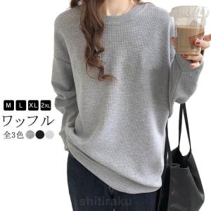 トレーナー 春秋 トップス レディース 韓国ファッション スウェット 長袖 Tシャツ ゆったり シンプル 着痩せ ワッフル ドロップショルダー 無地