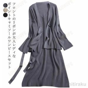 レディース 韓国ファッション 上下セット ニット セーター Vネック スカート ミモレ丈 大人女子 キレカジ フェミニン お出かけ服 オフィス ベージュ ピンク ブ
