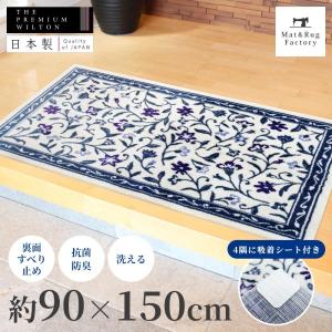玄関マット 大きめ おしゃれ 室内 屋内 風水 モンテサラサ 約90×150cm 大判 大きめ コーナー吸着つき 吸着シート 洗える 日本製 ウィルトン織り 更紗 オカ