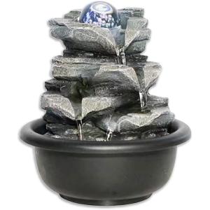 卓上噴水 循環式 水の音 癒し 風水 クリスタルボール付き インテリア おしゃれ 小型 室内装飾 (グレー, 約16x16x18cm)