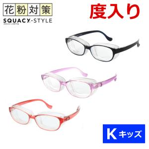 スカッシースタイル 度入りセット キッズサイズ Kidsサイズ 子供向け 花粉 ほこり 飛沫 ウイルス ドライアイ 度つきメガネ完成品 8730