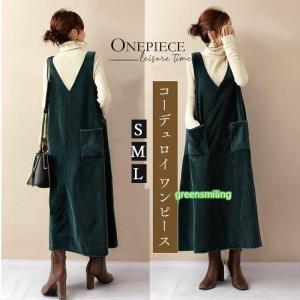 ワンピース コーデュロイワンピース レディース Vネック 深い シンプル 軽量 すっきり 高見え ゆったり 体型カバー 着痩せ 華奢 オールシーズン