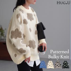 ニット 花柄 セーター レディース トップス 厚手 厚い 総柄 ドルマン フラワー ドロップショルダー Uネック シャギー 立体 オーバーサイズ プルオーバー