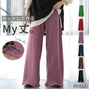 パンツ 切れるパンツ リブパンツ レディース ワイド セルフカット プリーツ パンツ リブ 裾