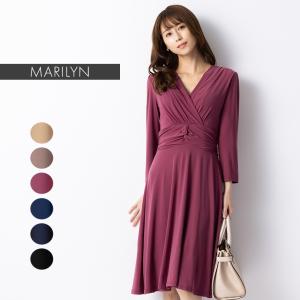 ワンピース レディース マリリン ツイスト 無地 opp6a-050001 きれいめ 40代 50代 60代 上品 大きいサイズ 膝丈 七分袖 春夏秋冬