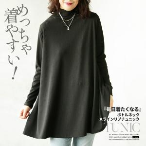 チュニック ワンピース レディース ブラック 上品Aラインリブチュニック OTONA 40代 50代 60代
