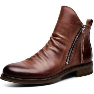 クロス レザーブーツ メンズ サイドジップ バイク ショートブーツ ファスナー付き 紐なし カジュアル(ブラウン, 27.5 cm)