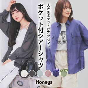 トップス シアーシャツ シャツ ブラウス 長袖 シアー素材 無地 ナイロン ポケッ SALE Honeys ハニーズ ポケット付シアーシャツ