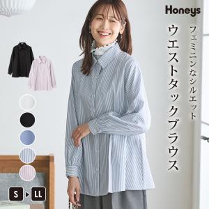 トップス ブラウス 長袖 ウエストタック フェミニン 無地 ストライプ柄 レディース Honeys ハニーズ ウエストタックブラウス