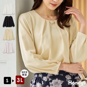 トップス ブラウス 長袖 大きいサイズ オフィス きれいめ 無地 再生ポリエステル メ Honeys ハニーズ メタルパーツ付ブラウス