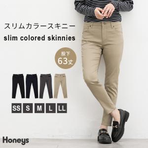 ボトムス パンツ スリムカラースキニーパンツ ロングパンツ 股下63cm ストレッチ 綿混 レディース Honeys ハニーズ スリムカラースキニー(股下63cm)
