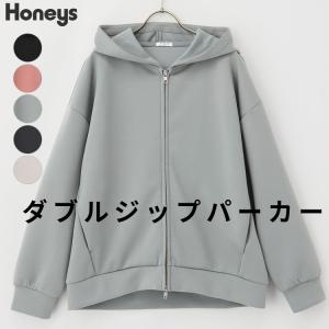 トップス スウェット 長袖 パーカー ジップパーカー ジップアップパーカー レディ SALE Honeys ハニーズ ダブルジップゆるパーカー