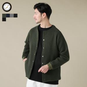 ノーカラージャケット メンズ 日本製 ストライプキルト ノーカラー スナップ ジャケット