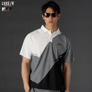 【セットアップ対応】 ポロシャツ メンズ 夏 ゴルフ 接触冷感 速乾 ナイロン ハイネック 半袖 ストレッチ 切り替え ラグジュ 45620