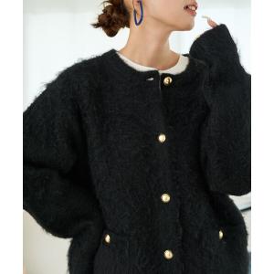 カーディガン 限定展開 ミックスシャギー 金ボタン ニット カーディガン レディース