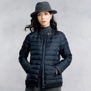 ビジュー使い ラメニット ライトダウンジャケット ジャケット ノーカラージャケット 125902