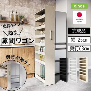 [幅25奥行63cm] 奥行深い頑丈すき間ワゴン 完成品 日本製 キッチン収納 キッチンストッカー 隙間収納 630003