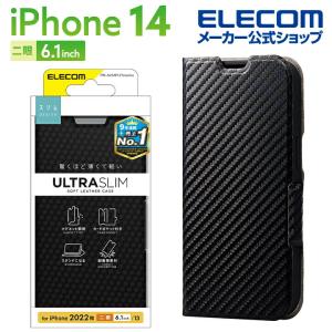 エレコム iPhone 14 用 ソフトレザーケース 薄型 磁石付 iPhone14 / iPhone13 6.1インチ ケース カバー 手帳型 カーボン調ブラック┃PM-A22APLFUCB