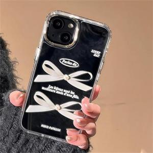 iPhone ケース 韓国 背面ミラー リボン かわいい カバー 鏡 シルバー リボンホワイト 耐衝撃 Y2K レトロ おしゃれ フレンチ 15 11
