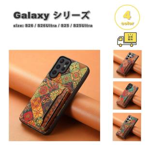 ギャラクシー Galaxy ウッド カード収納 スタンド機能 ウォレット 花柄 フラワー カラフル ケース 全4色 S26/S26Ultra/S25/S25Ultra 耐衝撃 カバー 送料無料